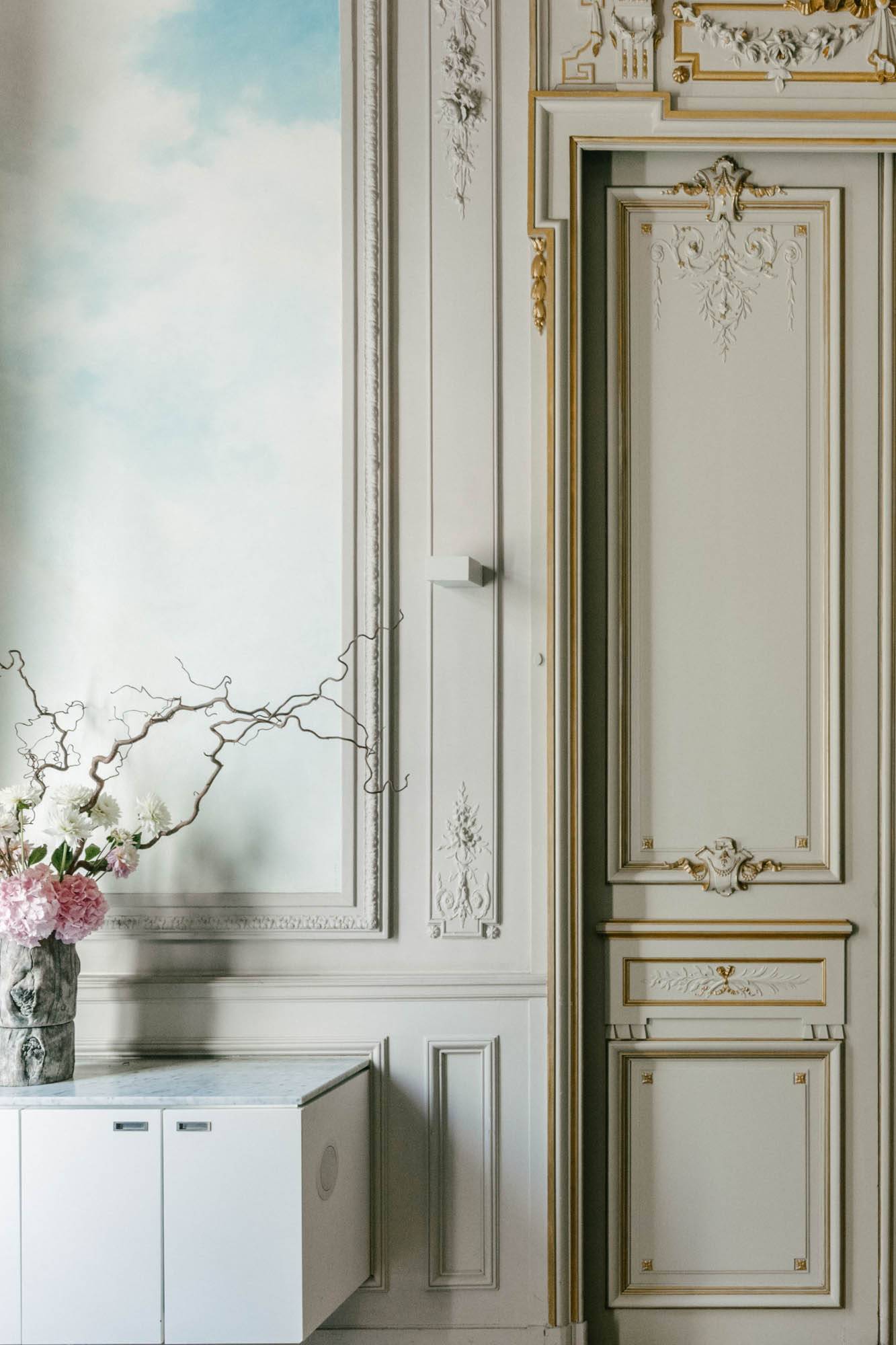 Laisser visible l'empreinte du temps. Ce qui avait été épargné a été restauré avec délicatesse : les pièces de réception du rez de chaussée ainsi que le grand escalier avec leurs moulures et leurs fresques. Ce qui avait été endommagé a été laissé visible : les saignées dans les murs de briques, les perforations dans les pierres sont toujours là. Ce qui avait été détruit n'a pas été reconstitué : pas de fausses moulures, pas de fausse patine, pas de faux 19ème. Les volumes neufs ont été conçus de façon contemporaine avec des matériaux actuels : béton, acier corten, verre, corian , murs végétaux.