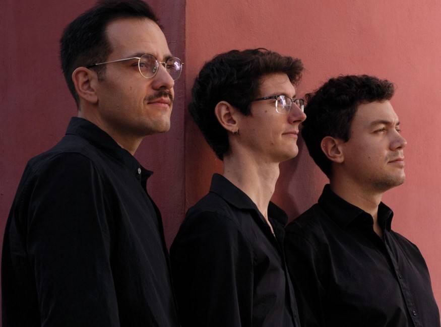 De la contrebasse d’Olivier Lalauze jaillissent des lignes et des mélodies qui lorgnent vers l’infini, et qui, par la magie des mains du musicien, dansent avec l’intensité fiévreuse du saxophone ténor d’Antoine Lucchini, ricochant sur les peaux et cymbales de la batterie de Léo Achard.